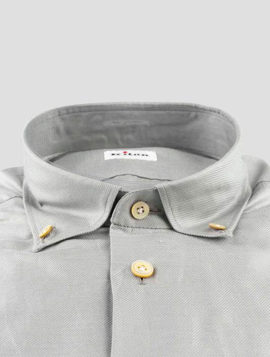 Kiton Premium Cotton Linen Shirt Gray Regular Fit Handmade Italian