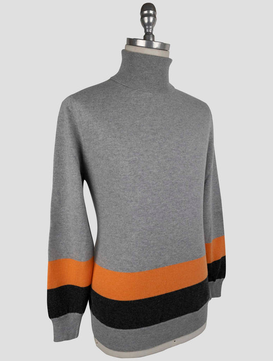 Серый и оранжевый кашемировый свитер с воротником Kiton