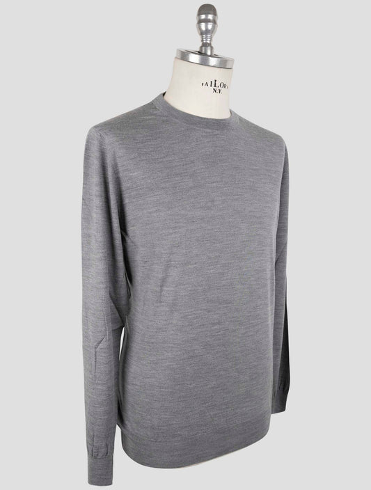 Свитер Crewneck из серой шерсти Kiton с узором в стиле диамант