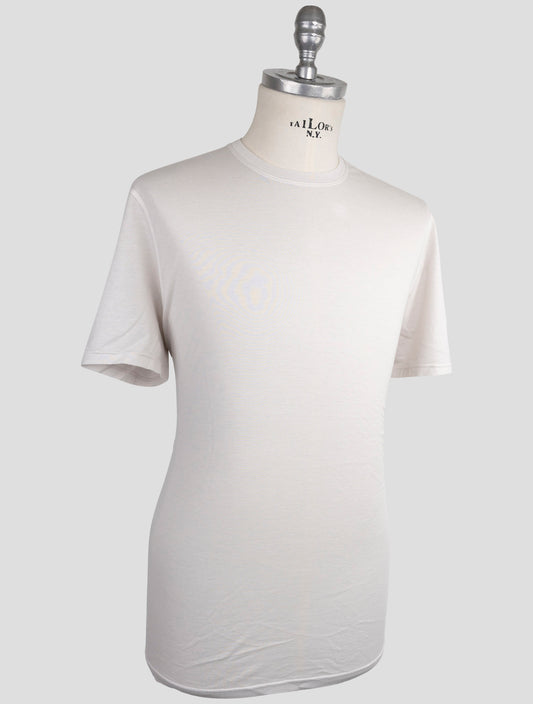 Kiton Men's Premium Cotton Cashmere T-Shirt White Handmade Italian